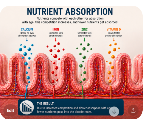Even with the best diet… aging bodies often still struggle to absorb enough nutrients.