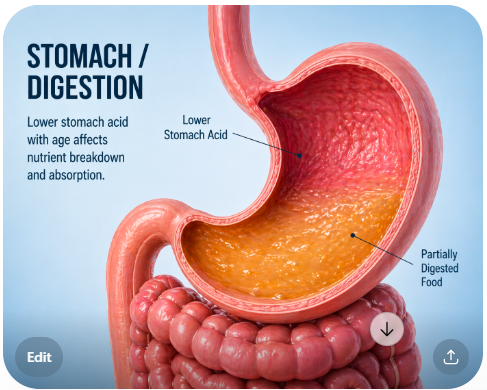 As you age, your stomach produces less acid.